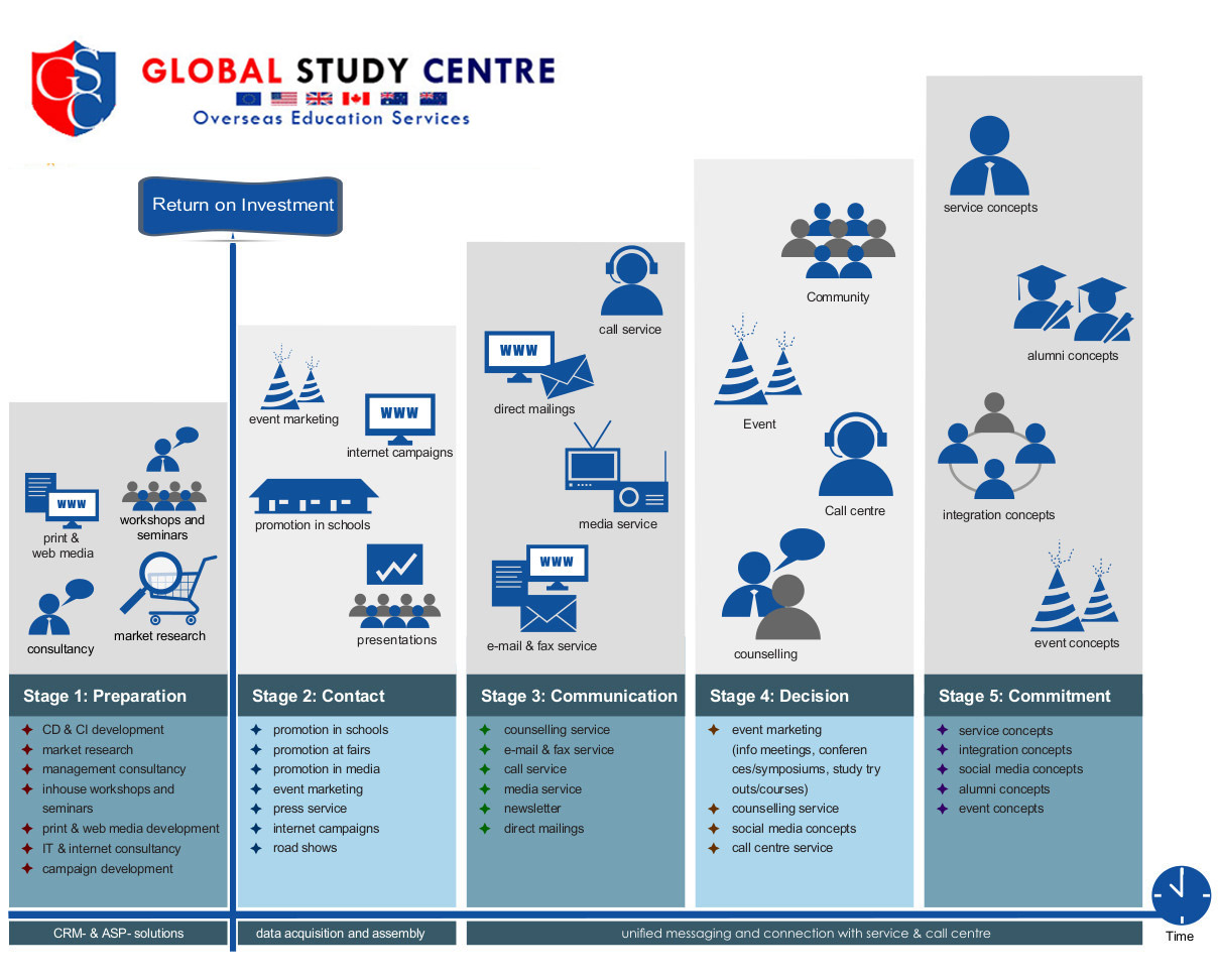Through research, surveys, and client interaction, Global Study Centre has a strong understanding of today’s student. We are solution-centred, providing our clients with the creativity, counsel and information they need to achieve their marketing objectives. We work proactively: listening to our market and responding by educating our staff and developing appropriate services for our clients. As a result, we help our clients identify, communicate and keep their brand promise. A partnership with Global Study Centre allows colleges and universities to leverage their years of experience, cutting-edge products, and top-notch service tailored to serve the needs of students